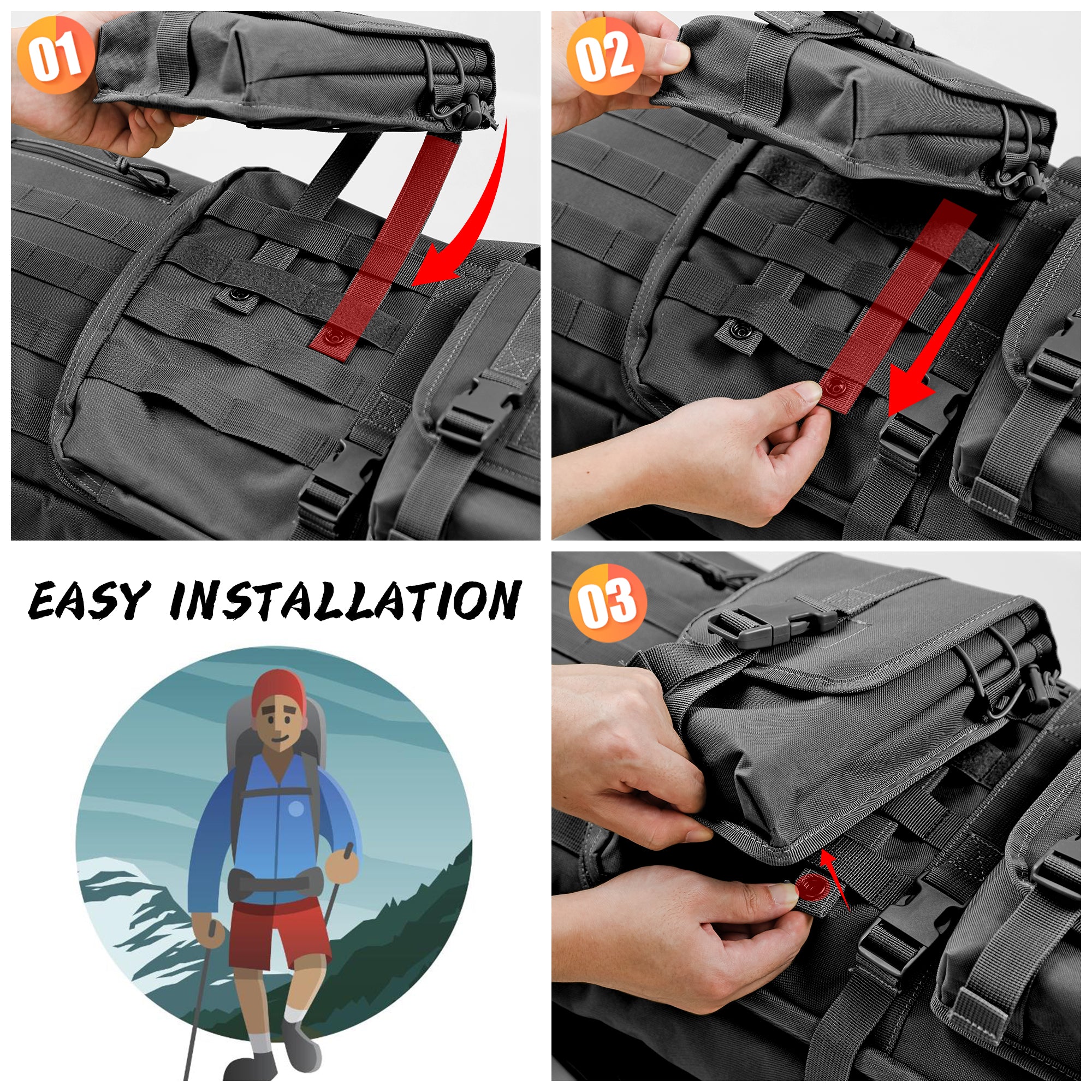 The multifunctional rifle bag comes equipped with MOLLE webbing system for easy attachments of a large variety of tools. Designed with two-way lockable zippers around the storage compartments for convenience. Adjustable snap buckle straps for securing firearms and additional gears in place and allows customized adjustments with regards to specific needs.